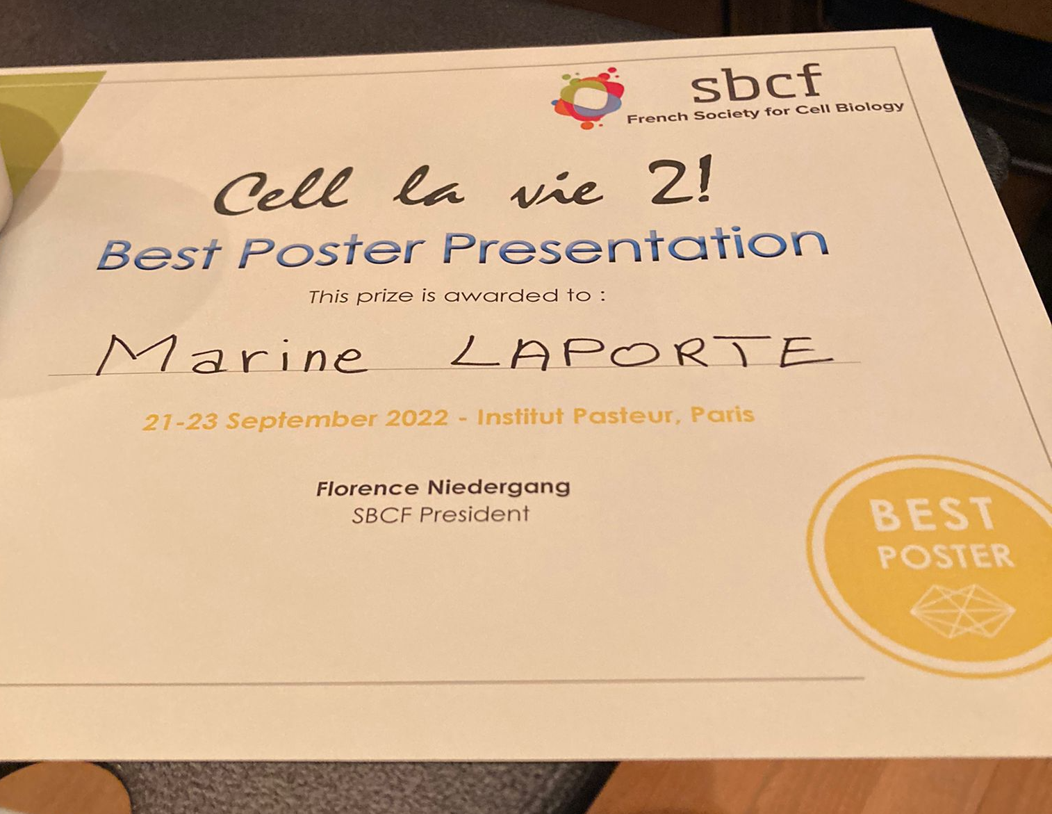 Sept 2022: Marine got the Best Poster award at the CellLaVie Conference 2022 !