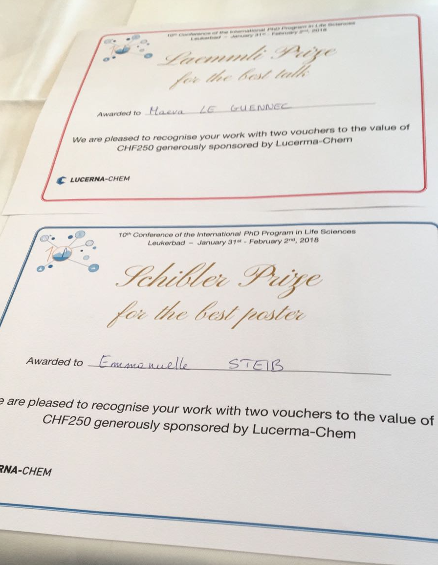 February 2018: Emmanuelle got the Schibler Prize for the best poster at the 10th conference of the international PHD Program in Life Sciences.