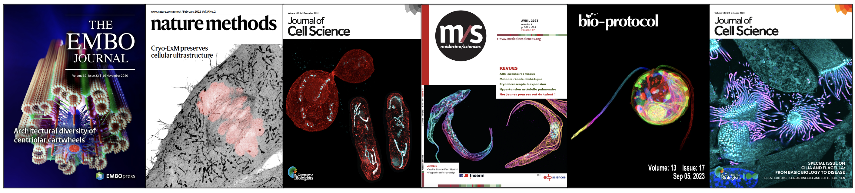 A helical inner scaffold provides a structural basis for centriole cohesion. Le Guennec M†, Klena N.†, Gambarotto D.†, Laporte MH †, Tassin AM, Van den Hoek H., Erdmann PS, Schaffer M., Kovacik L., Borgers S., Goldie KN, Stahlberg H., Bornens M., Azimzadeh J., Engel BD#, Hamel V.* and Guichard P.* 2019